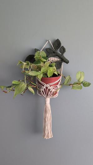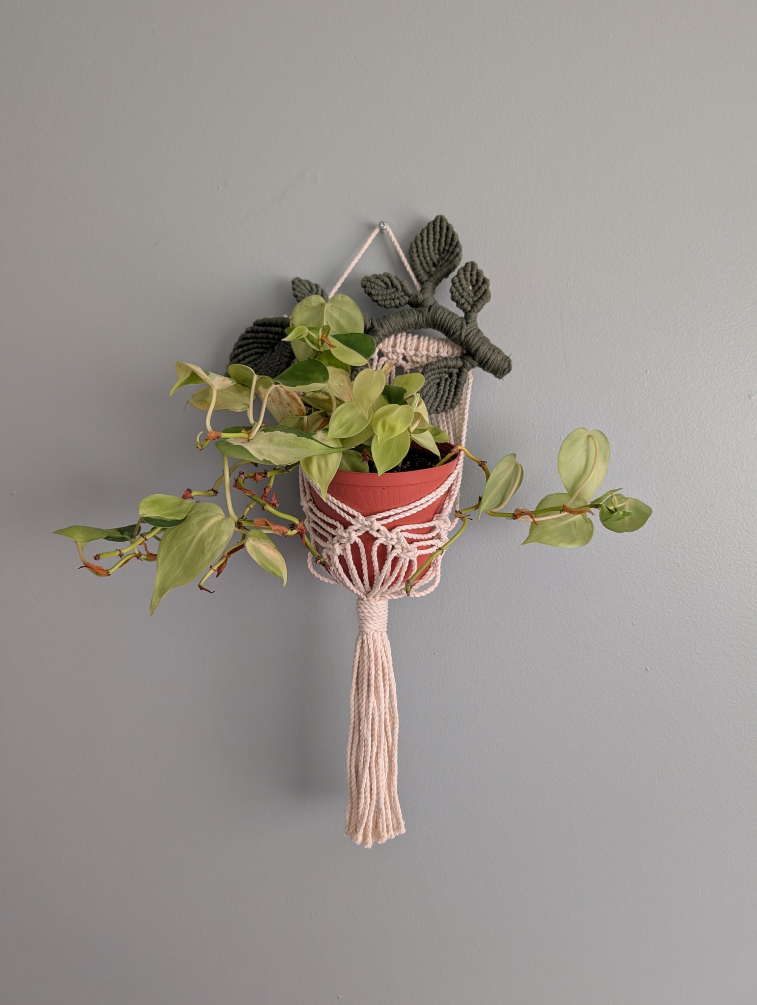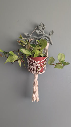Macrame plant hanger with a sculptural 3D knotted plant on top! A cute way to bring some nature inside, that looks great with or without a plant.