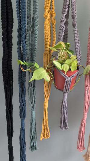 Hang it from a hook in your ceiling or a curtain rod! A cute way to bring some nature inside, that looks great with or without a plant.